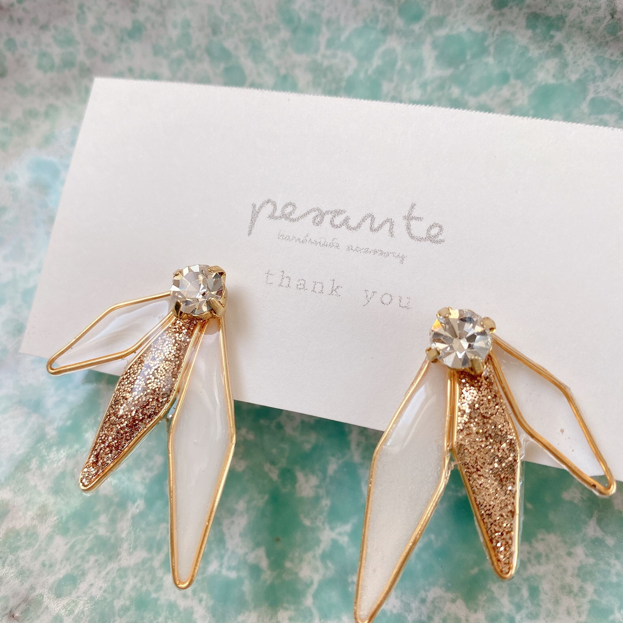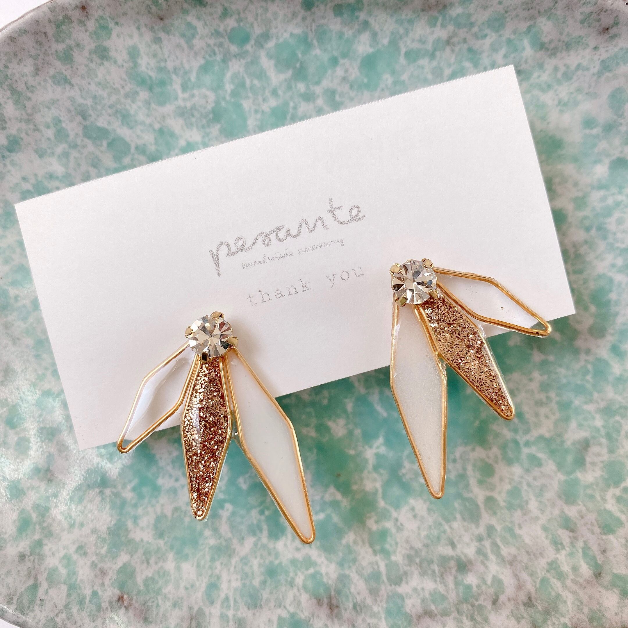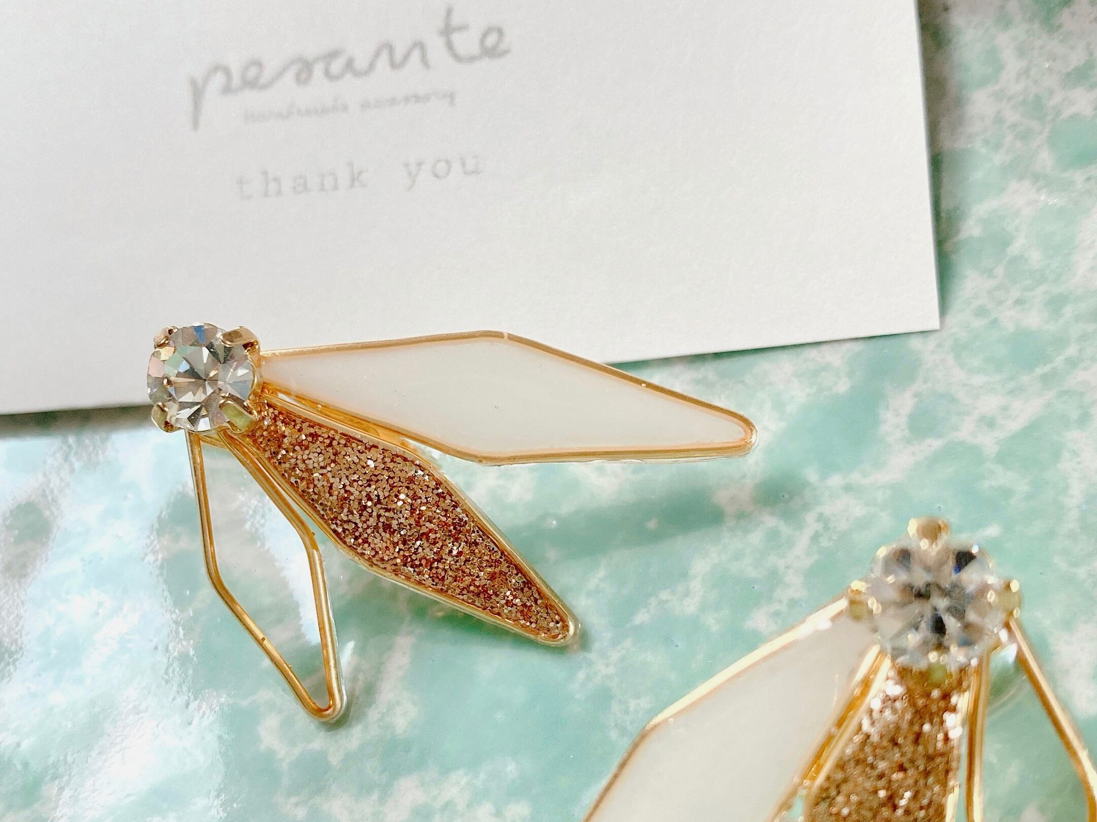 ゴールドのラメパウダーがキラキラと輝いて綺麗なイヤリングです。