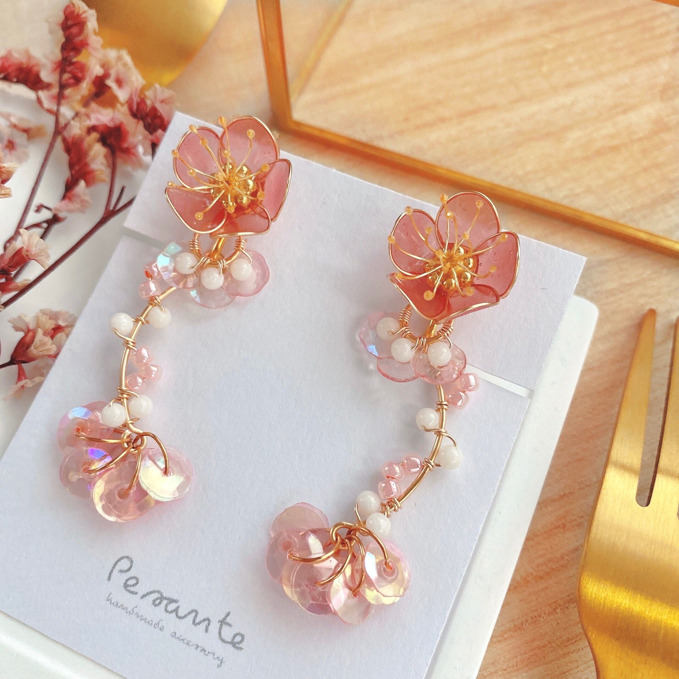 梅の花 白珊瑚 スパンコール イヤリング ピアス