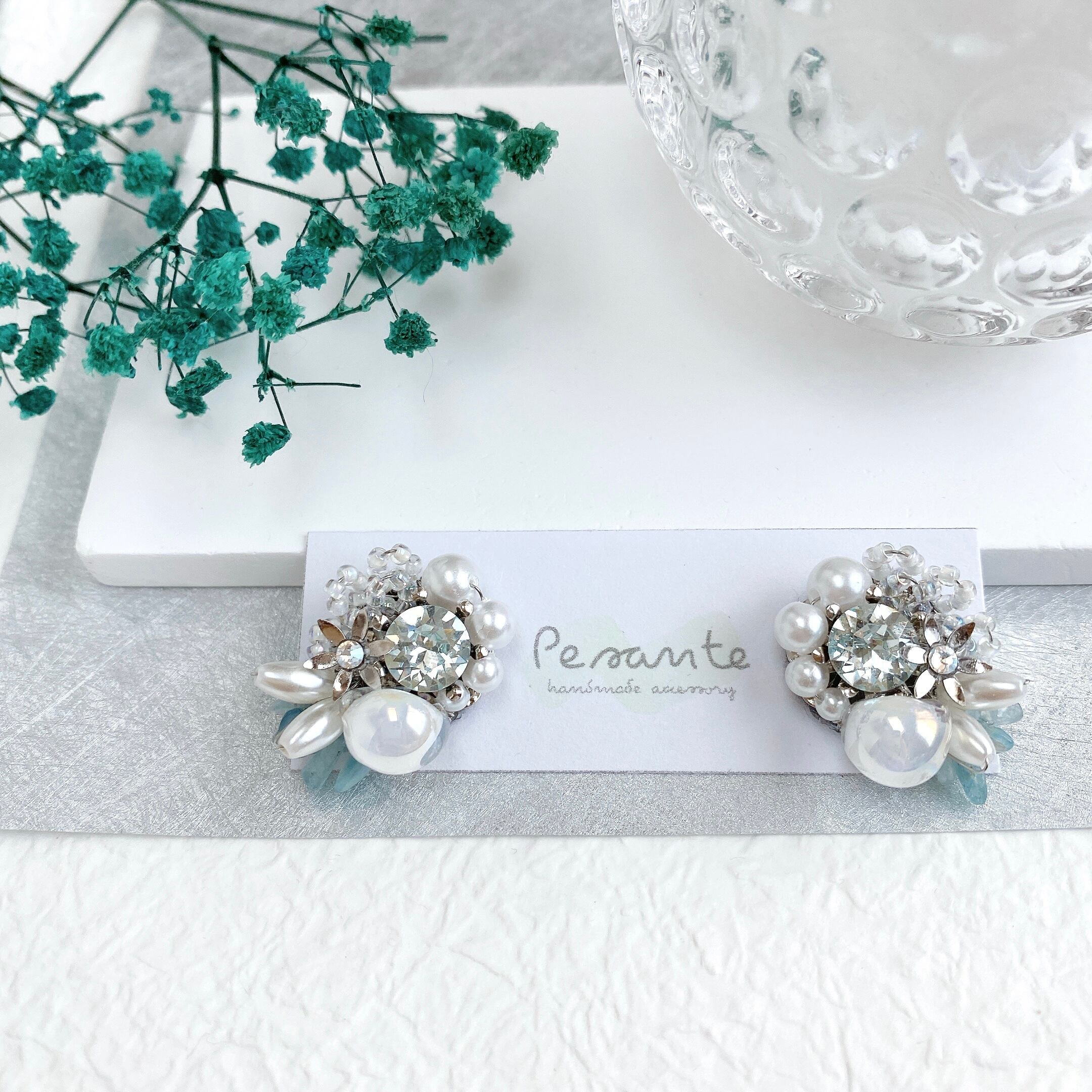 雪 冬 クリスタル パール ガラス イヤリング ピアス