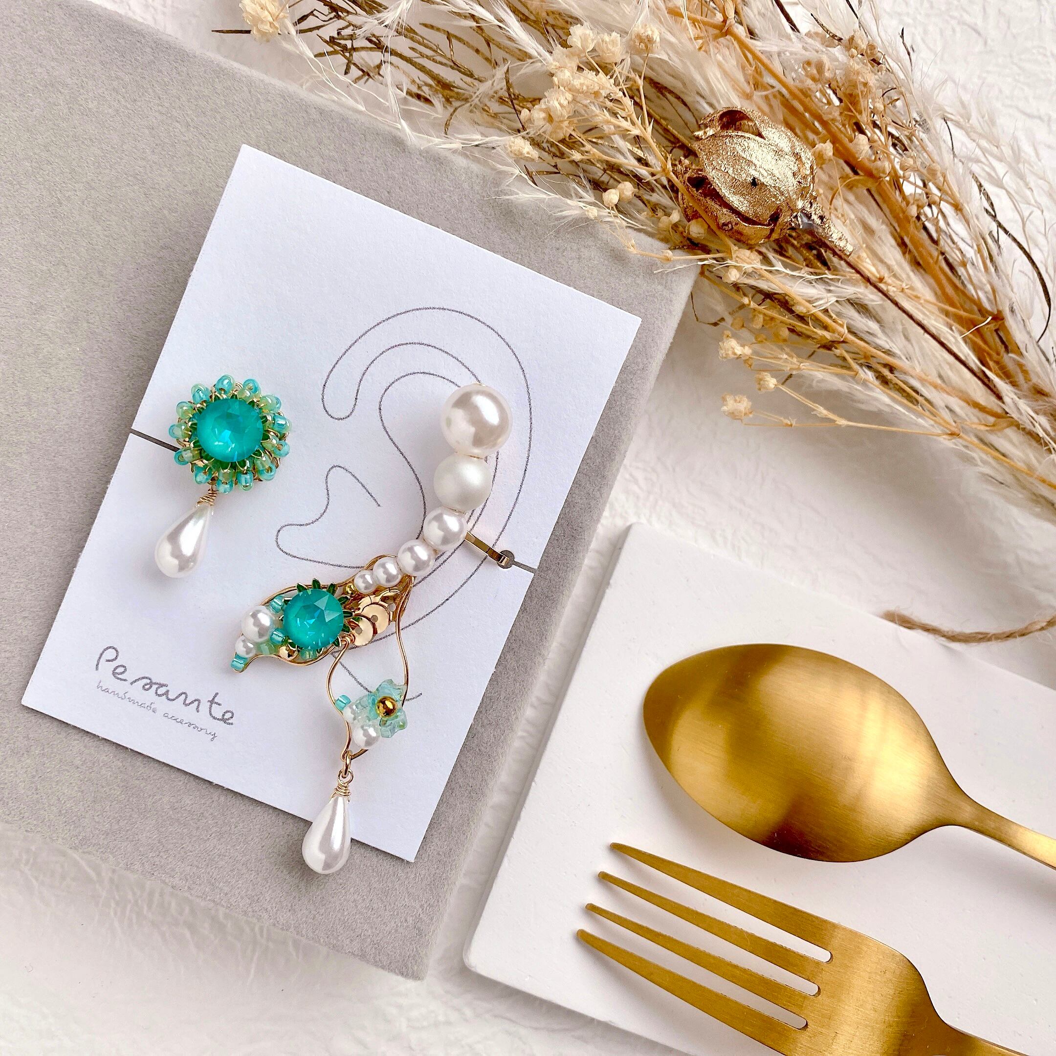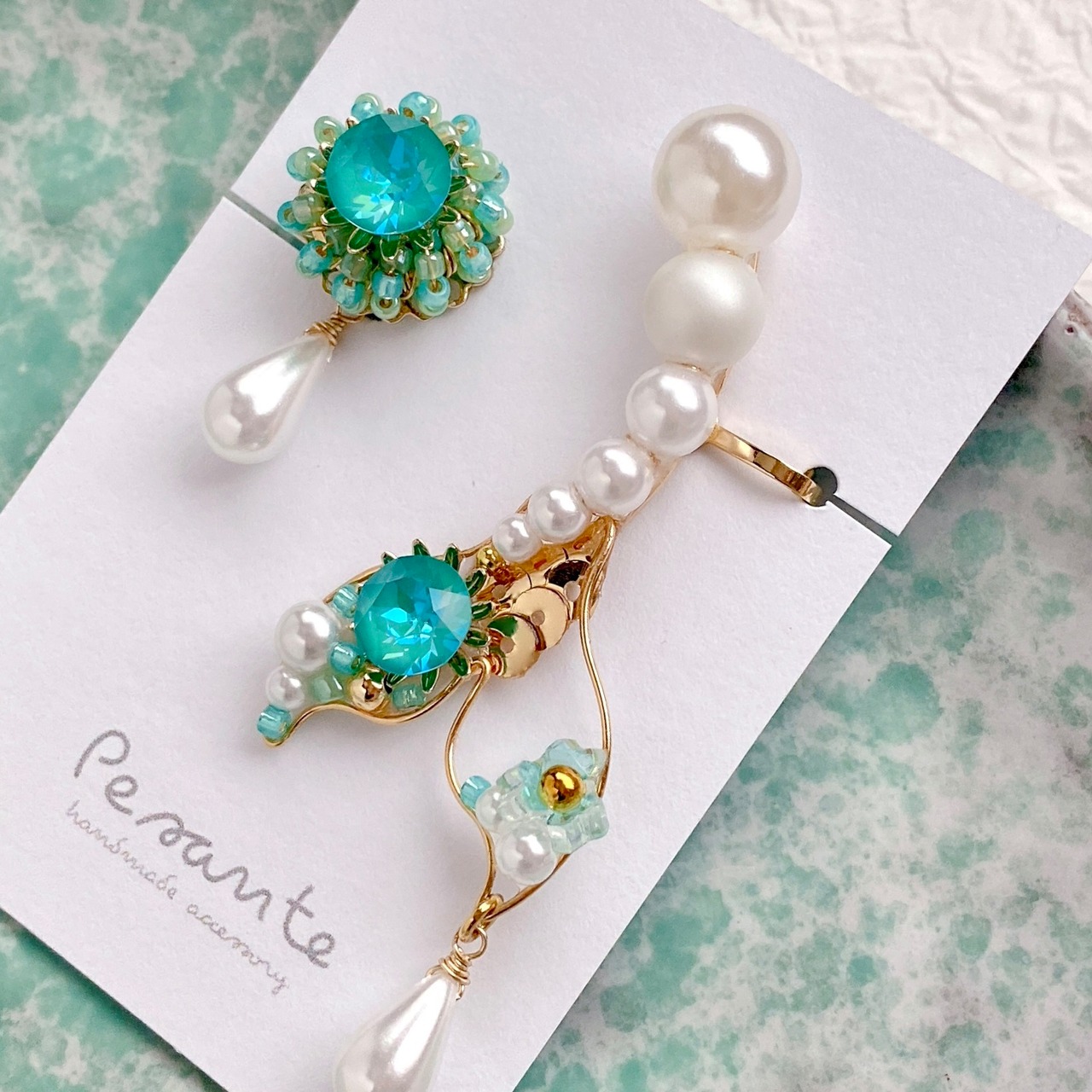 マーメイドテール 人魚 アシンメトリー パール クリスタル イヤリング ピアス イヤーカフ